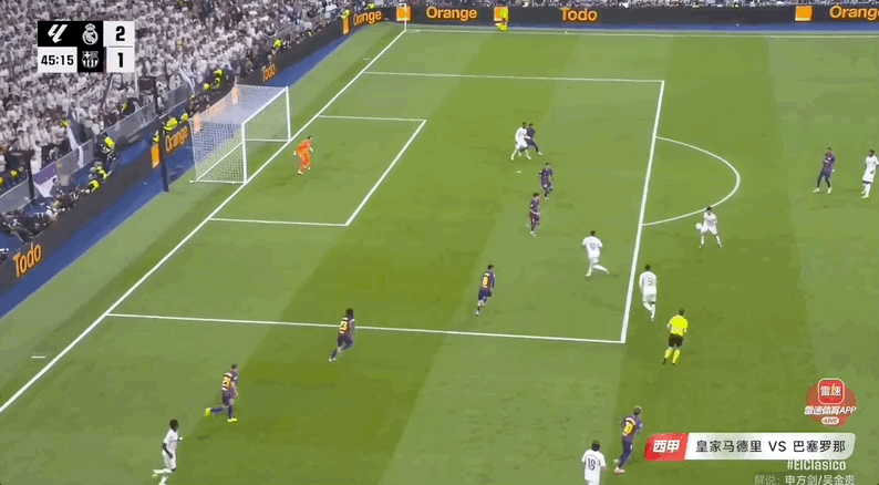 第22分鐘,姆巴佩單刀推射得手,幫助皇馬1-0領先巴薩