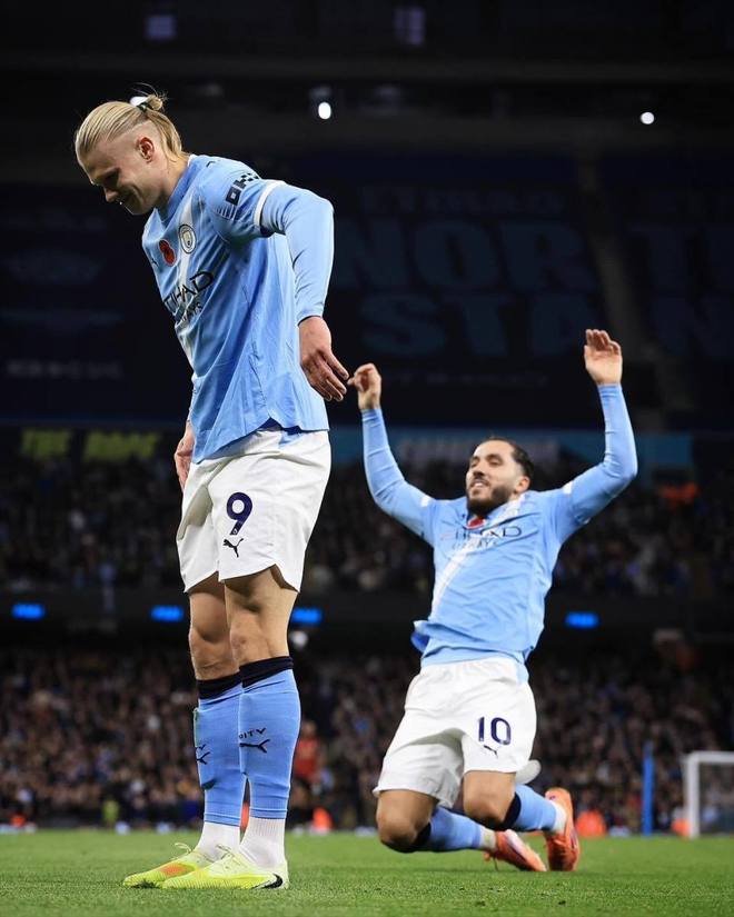 第33分鐘,謝爾基送出本場(chǎng)第二次手術(shù)般直塞,哈蘭德長(zhǎng)途奔襲過(guò)掉門(mén)將后推空門(mén)得手,完成梅開(kāi)二度,曼城2-1再度領(lǐng)先,這是他本賽季第5次單場(chǎng)至少進(jìn)兩球,超越凱恩,五大聯(lián)賽獨(dú)一檔的梅開(kāi)二度狂人。挪威鋒霸10戰(zhàn)13球,延續(xù)了和姆巴佩在五大聯(lián)賽的“金靴對(duì)沖戰(zhàn)”。隨后曼城的進(jìn)攻狂潮不減,多庫(kù)幾次突破制造威脅,謝爾基任意球差點(diǎn)再度破門(mén),被彼得羅維奇神撲化解。